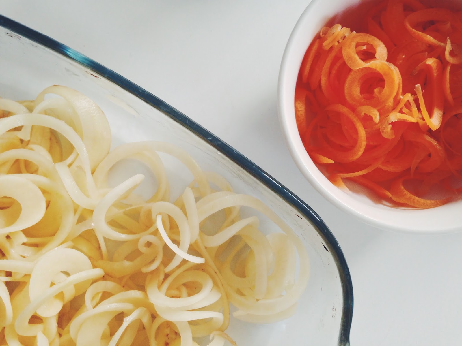 Here they are, perfectly spiralled strands of carrot, potato, and in previous posts, courgette – but which spiraliser actually works best? Having tried two now, I can tell you that some really are better than others…